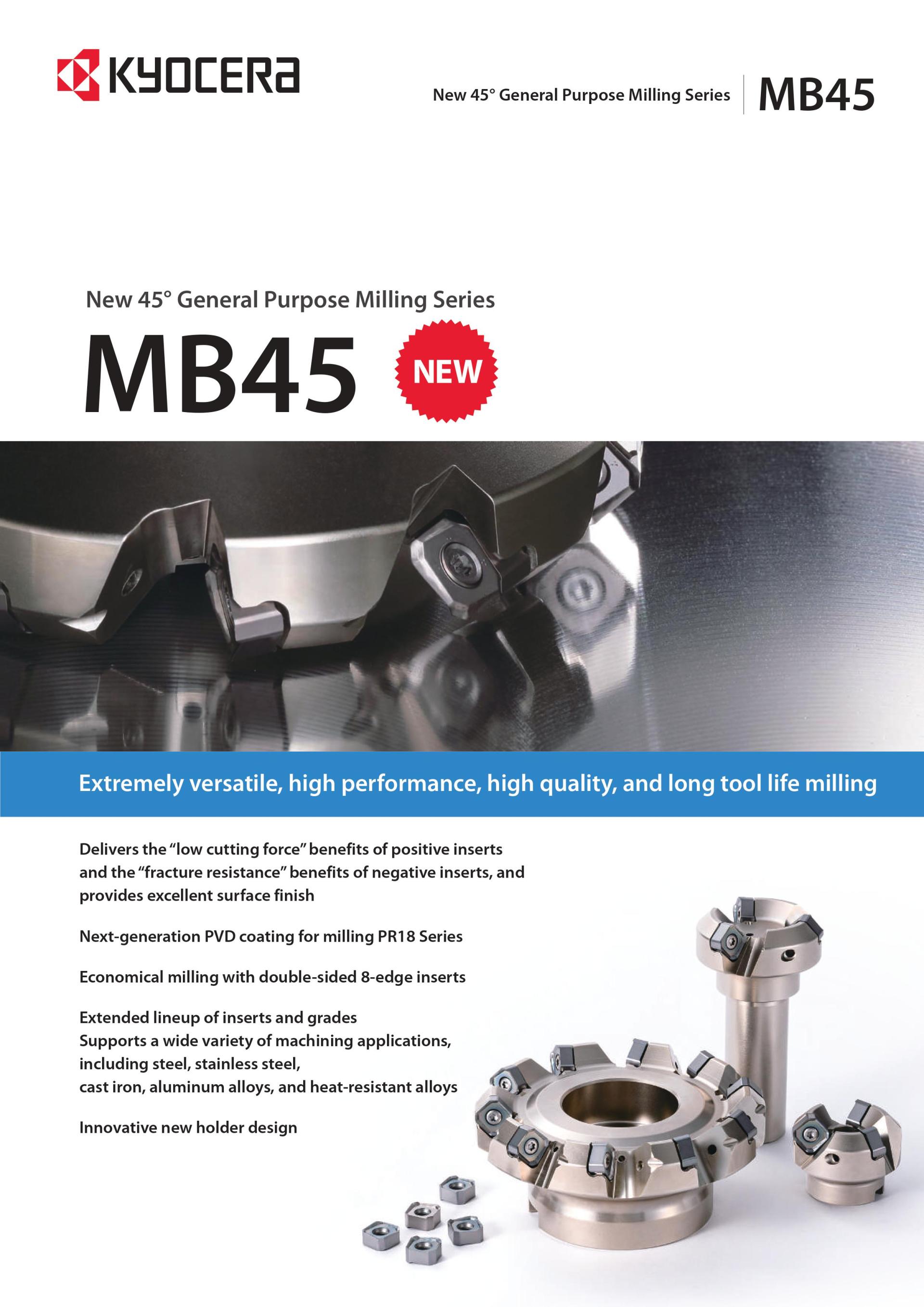 Dao phay gắn mảnh MB45 một trong những sản phẩm mới nhất từ Kyocera Cutting Tools ứng dụng gia công linh hoạt, hiệu suất cao, chất lượng cao và nâng cao tuổi thọ