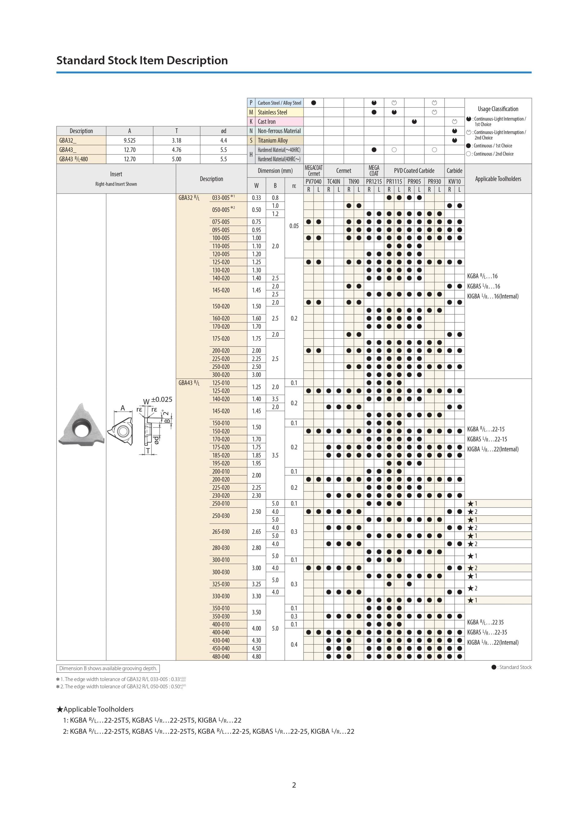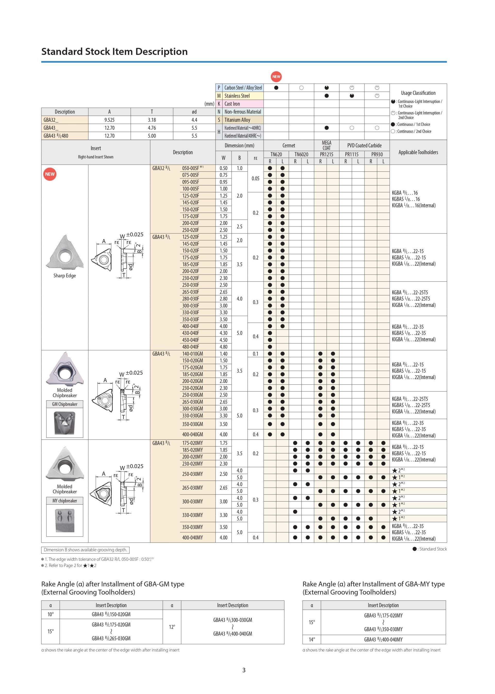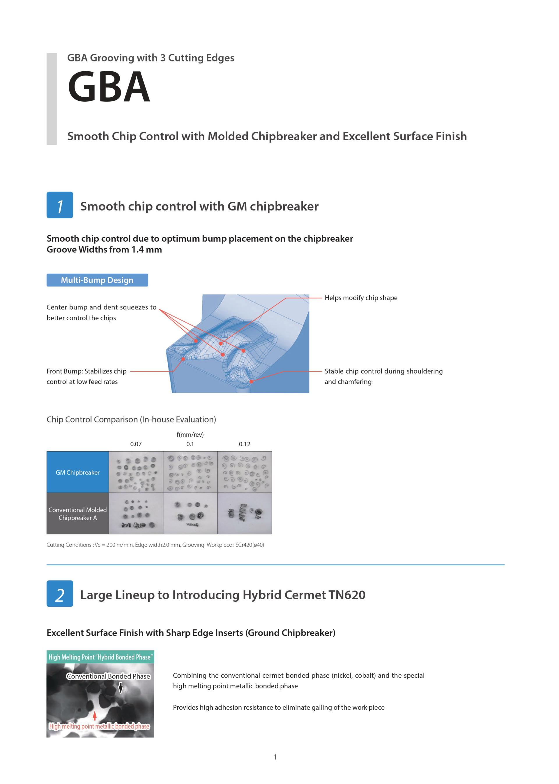 Có 2 dòng lớp phủ MEGACOAT cắt ở tốc độ cao và tuổi thọ dụng cụ dài. Đạt được độ bóng bề mặt tốt bởi lớp phủ MEGACOAT PV7040. Kiểm soát phoi tuyệt vời với thiết bị bẻ phoi GM