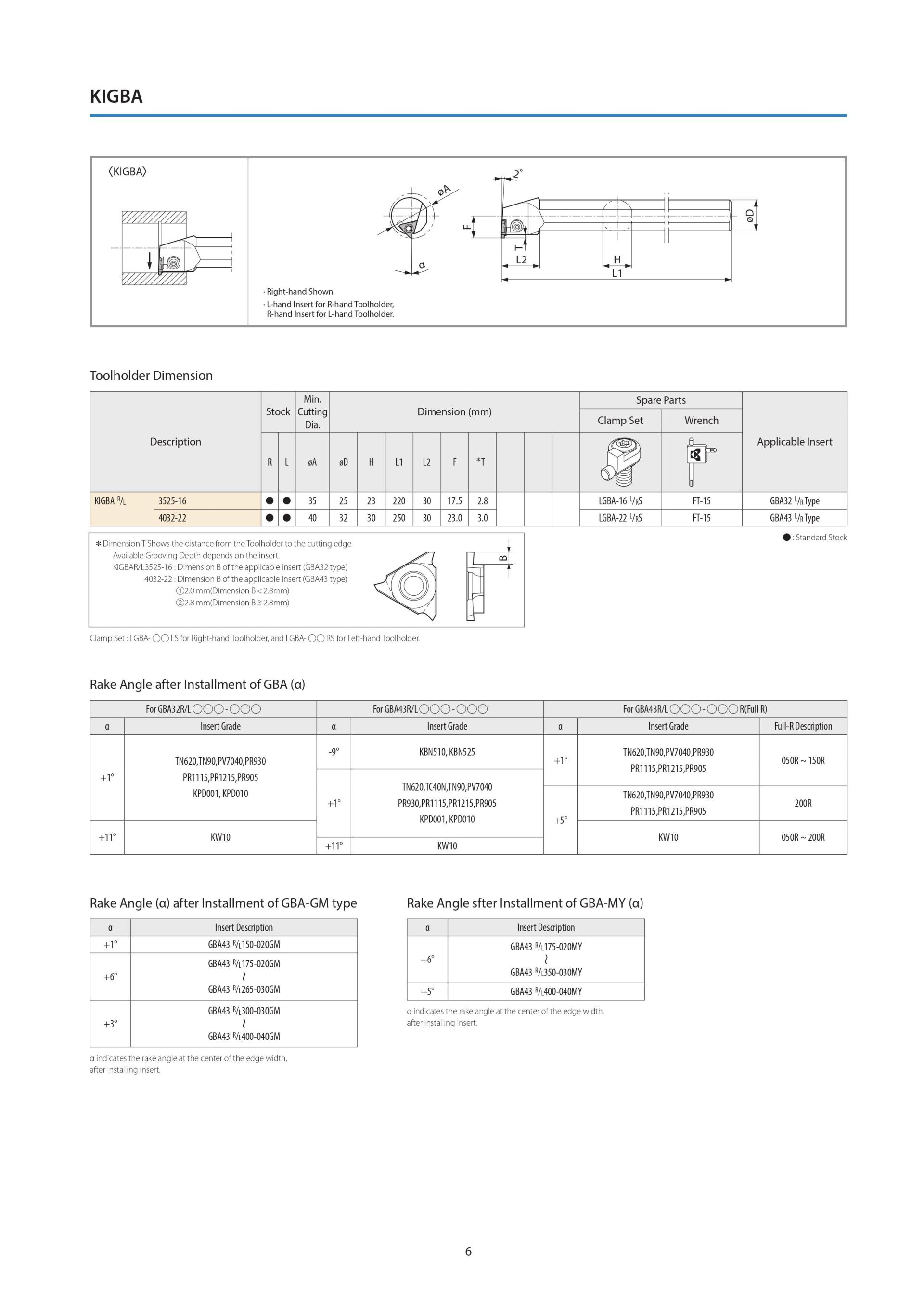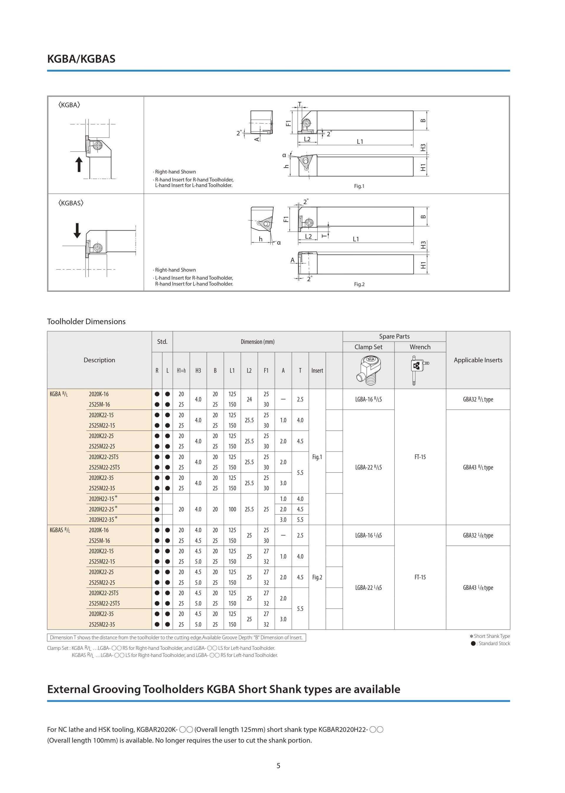 Các loại dao tiện rãnh và cán GBA/KGBA