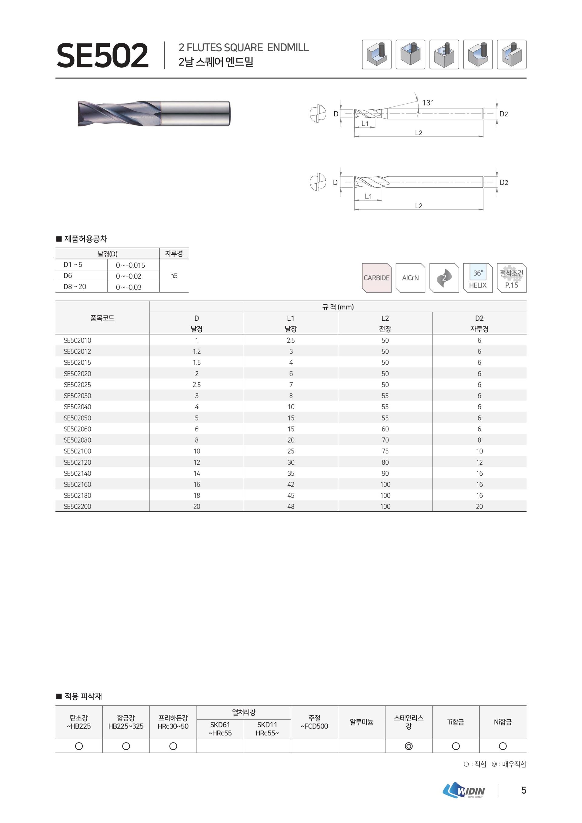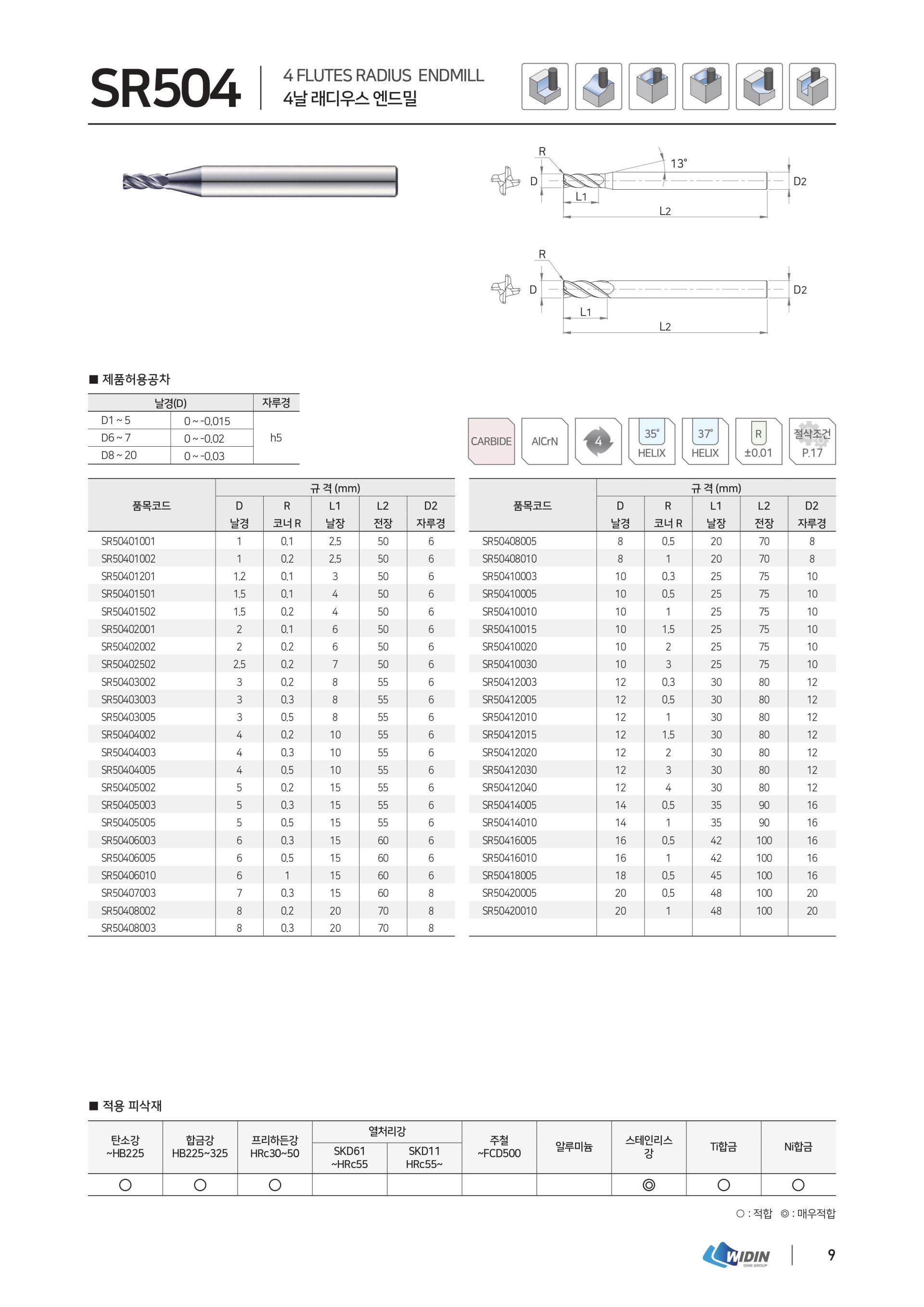 Dao phay Flat endmill ,Radius, Ball, Roughing-SE502-SE503-SE504-SE506-SR504-SR505-SR507-SB502-SB504-SF51H