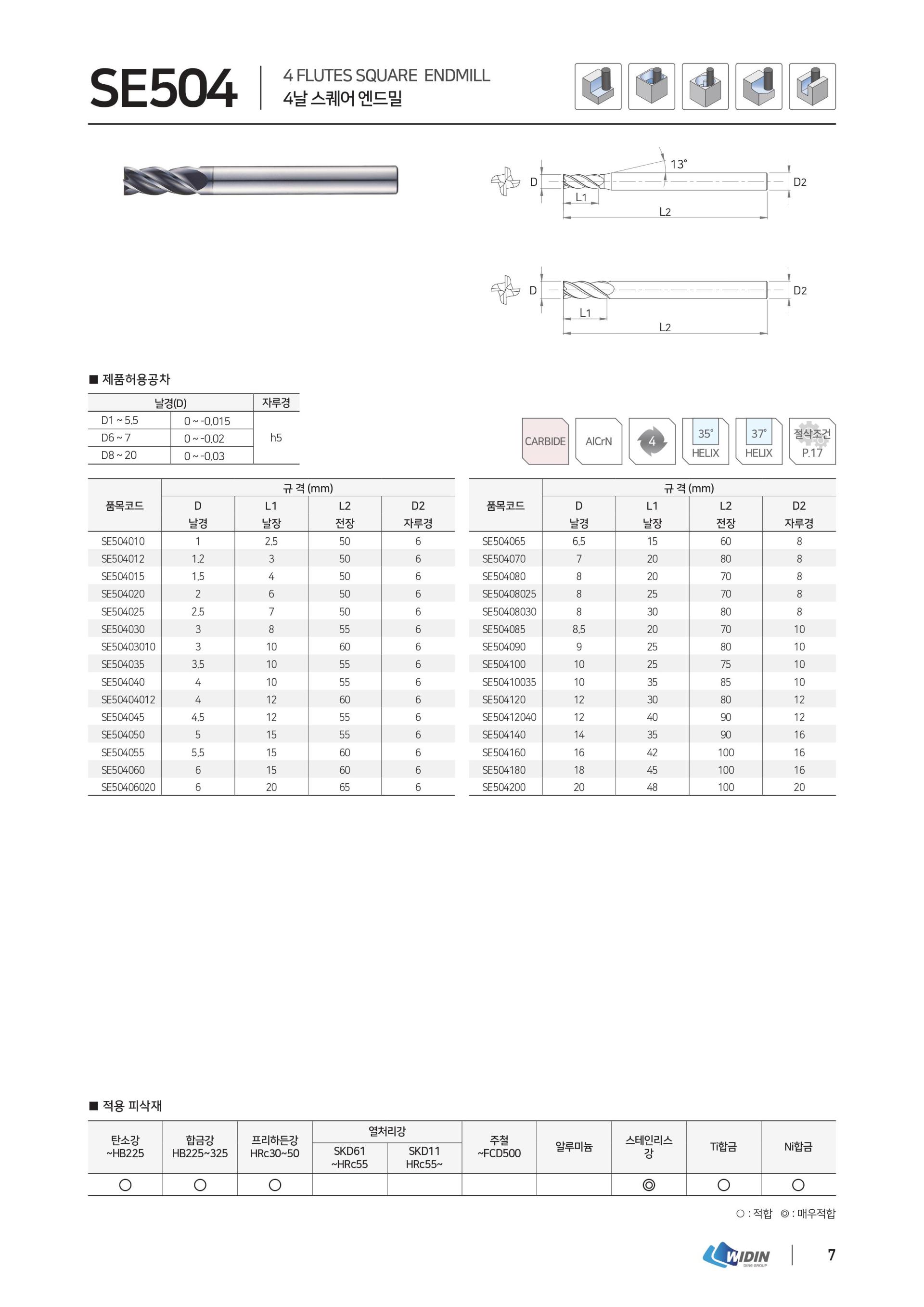 Dao Phay Ngón, Dao cầu ESB702, ESB712, ESE702, ESE704, ESE714, ESE716 – Widin Gia công Độ cứng: 50~63HRC