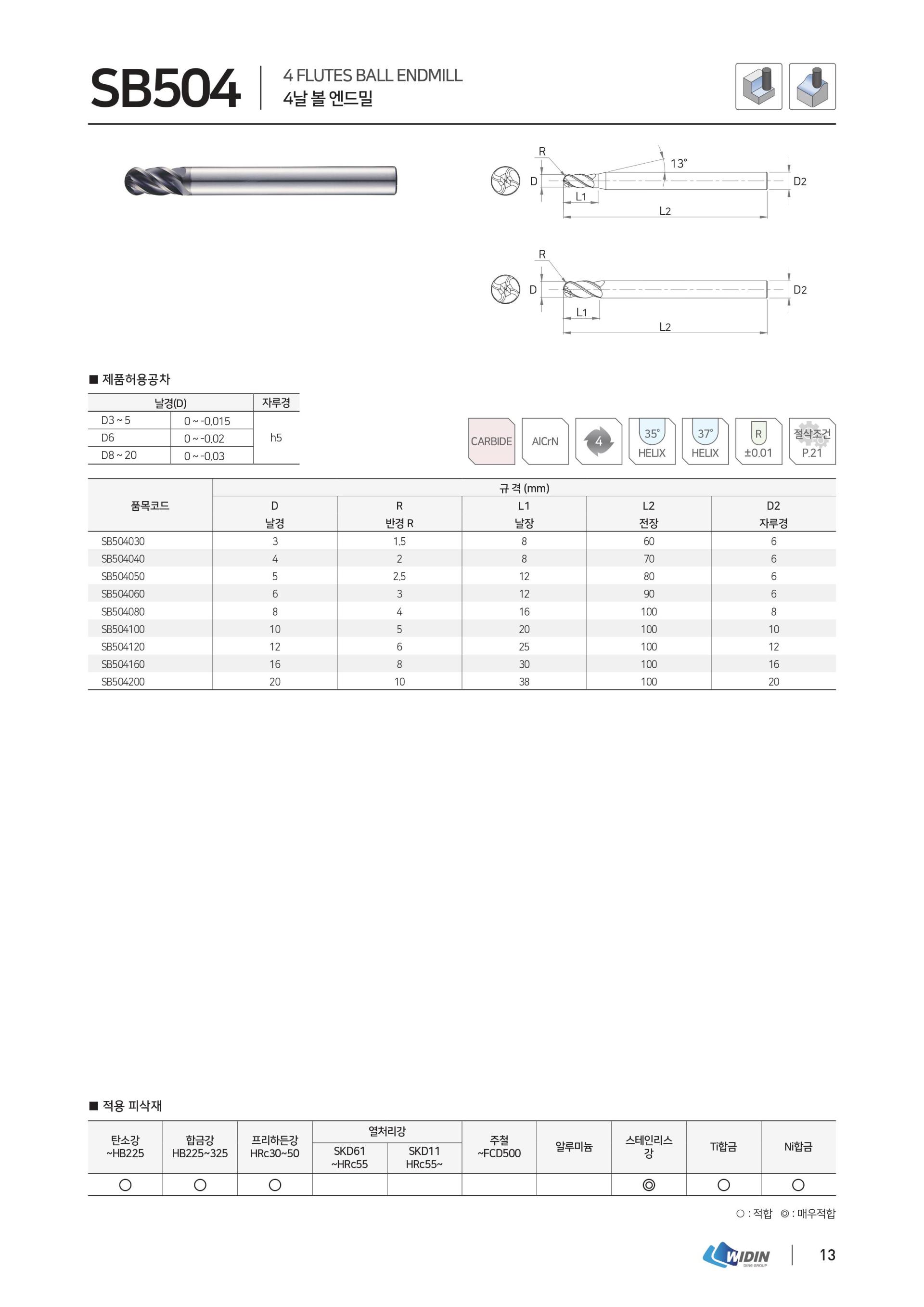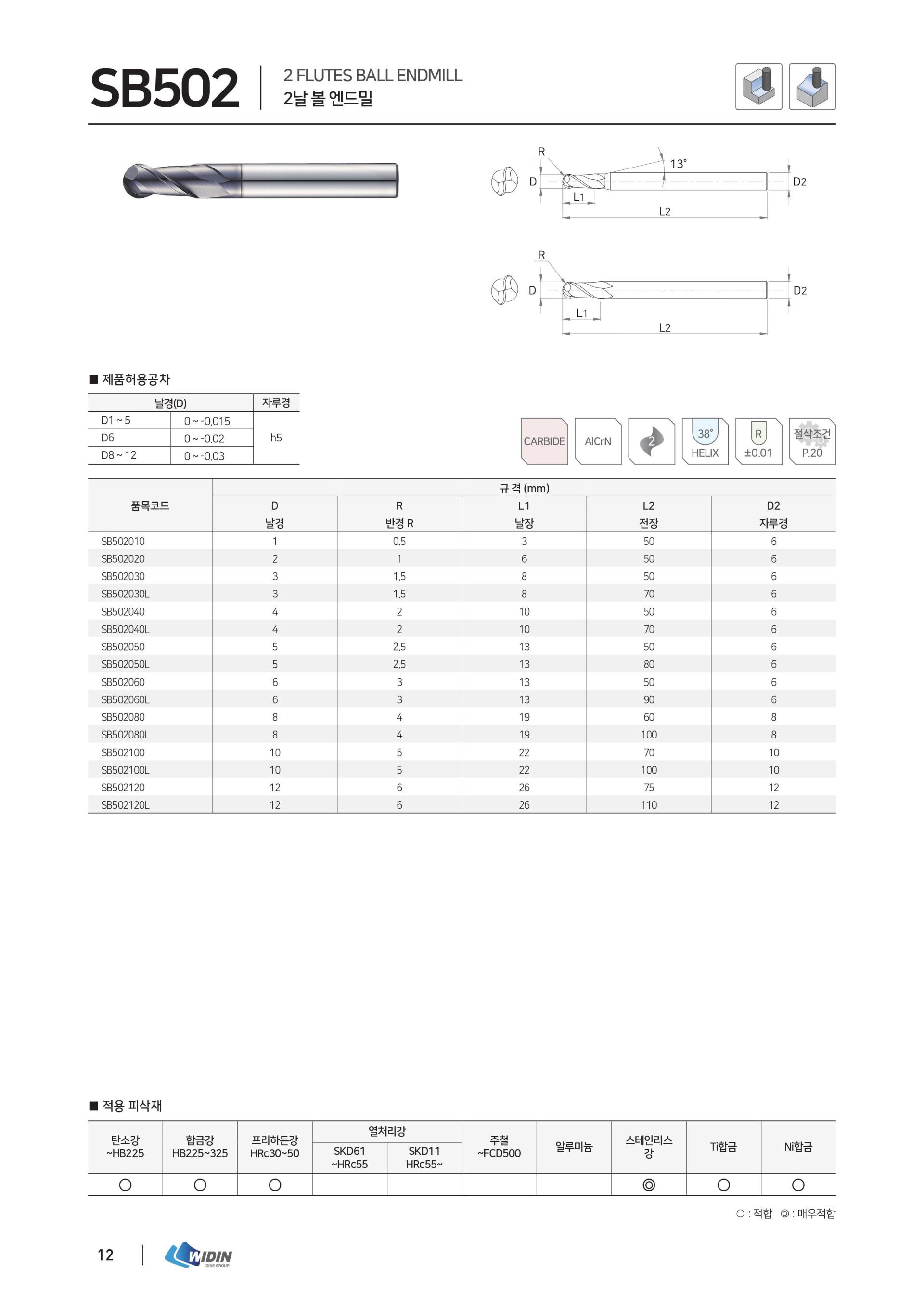 DAO PHAY NGÓN, DAO CẦU GIA CÔNG ĐỘ CỨNG 30~50HRC – WIDIN