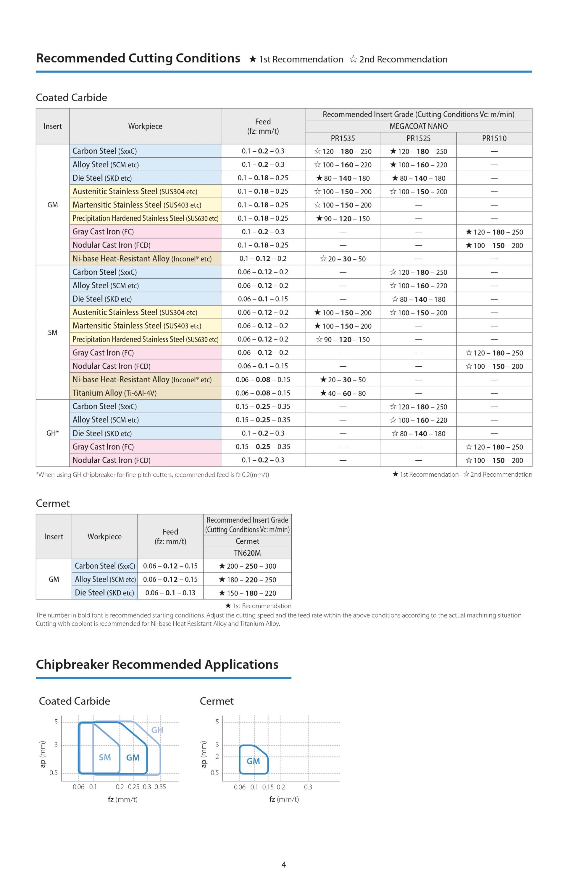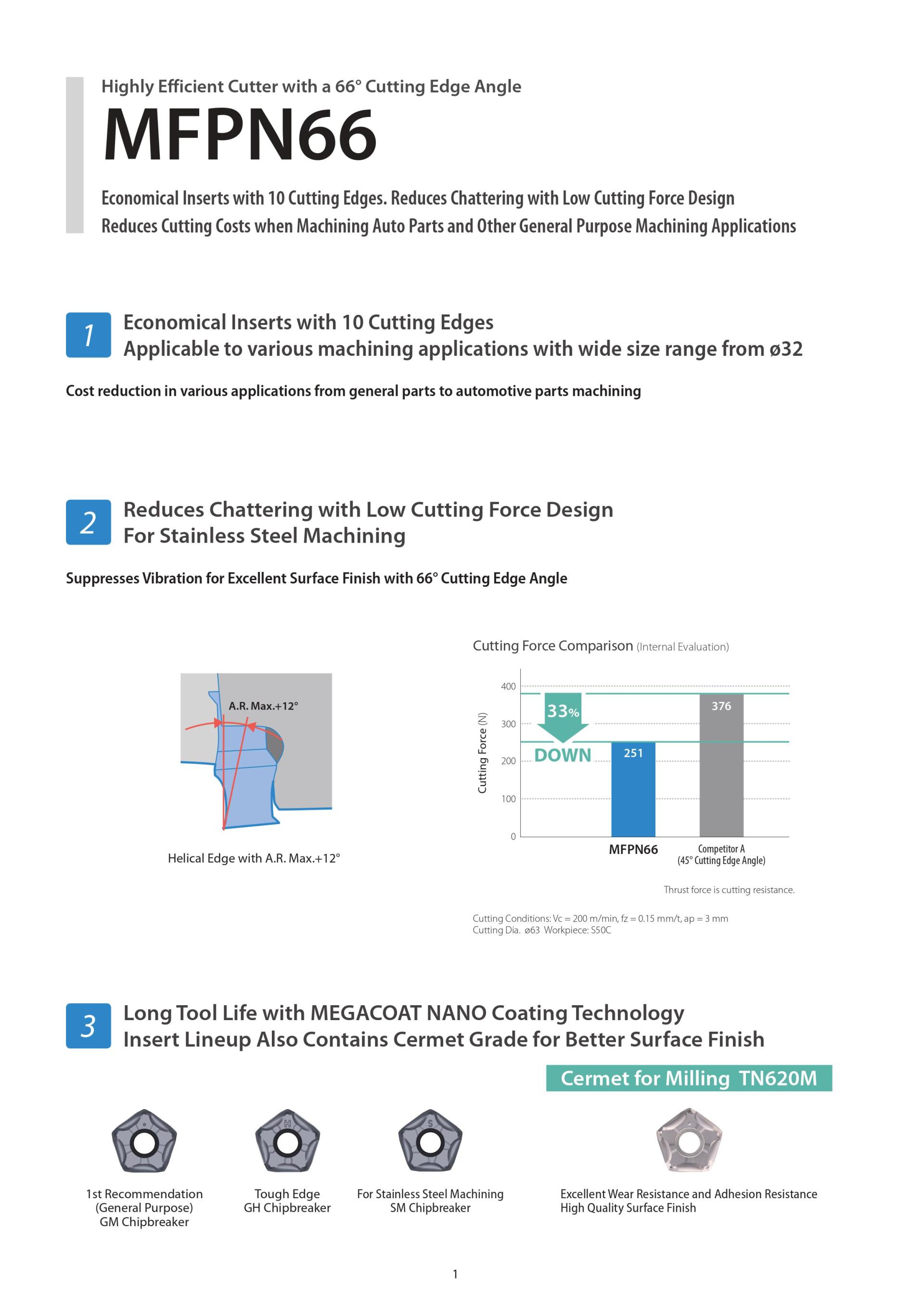 Tuổi thọ dụng cụ dài với Công nghệ phủ NANO MEGACOAT Dòng sản phẩm hạt dao cũng chứa lớp gốm kim loại để có bề mặt hoàn thiện tốt hơn
