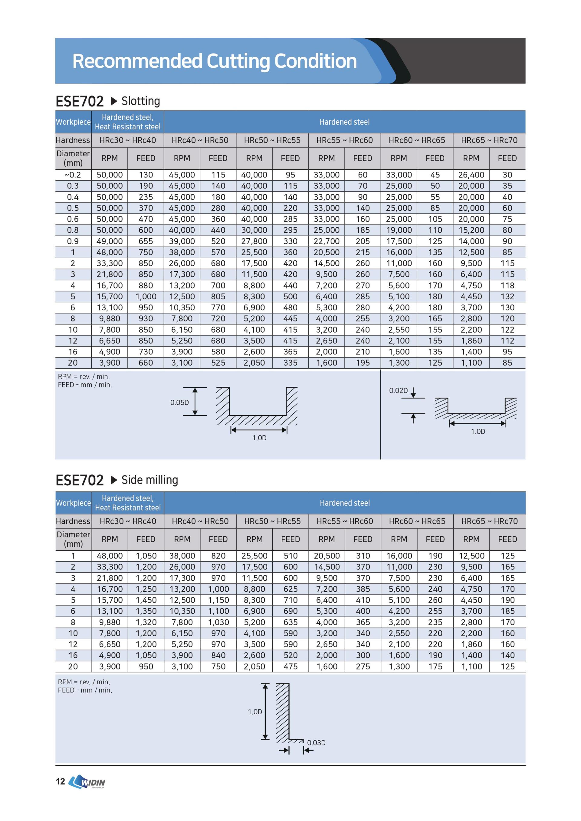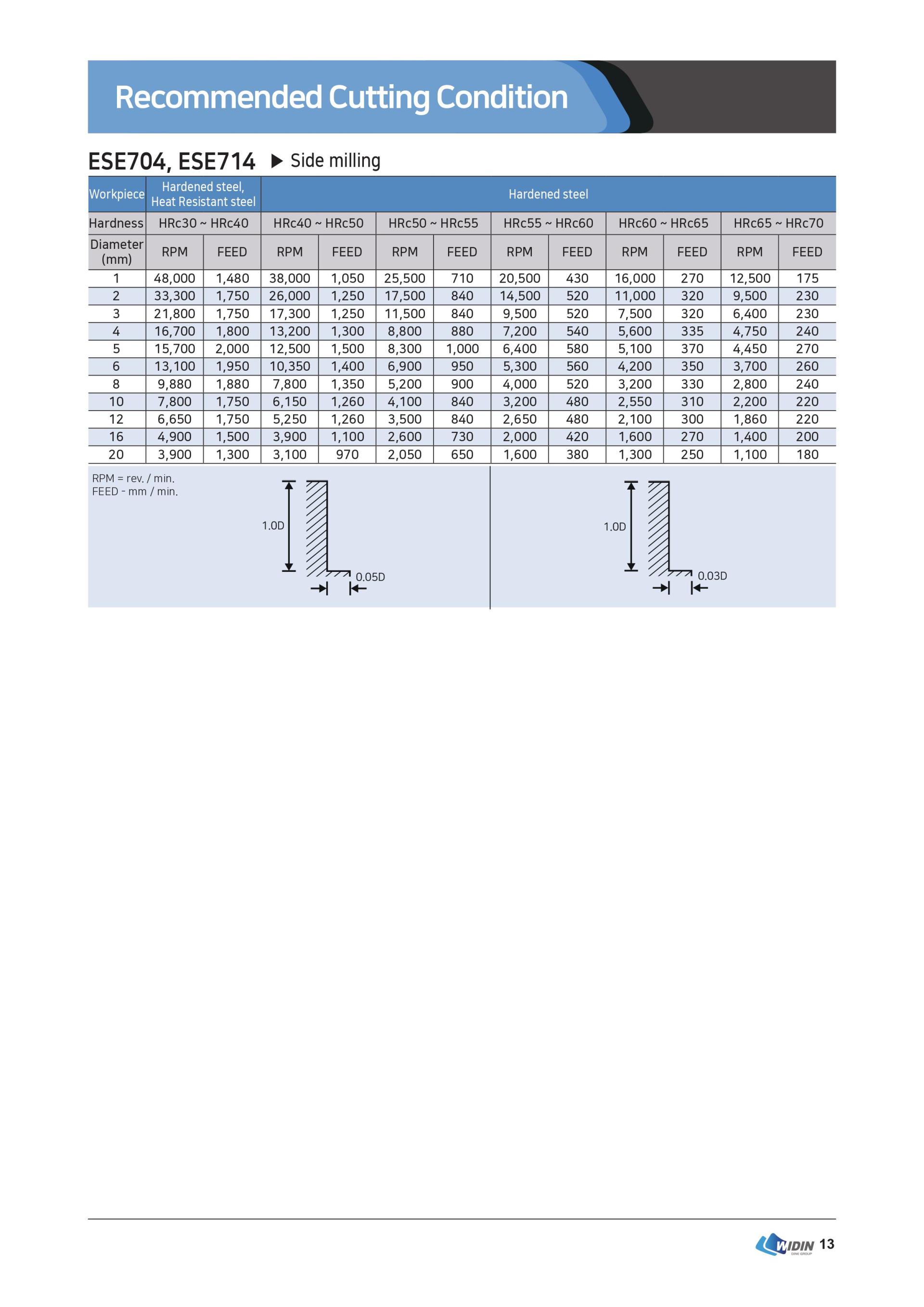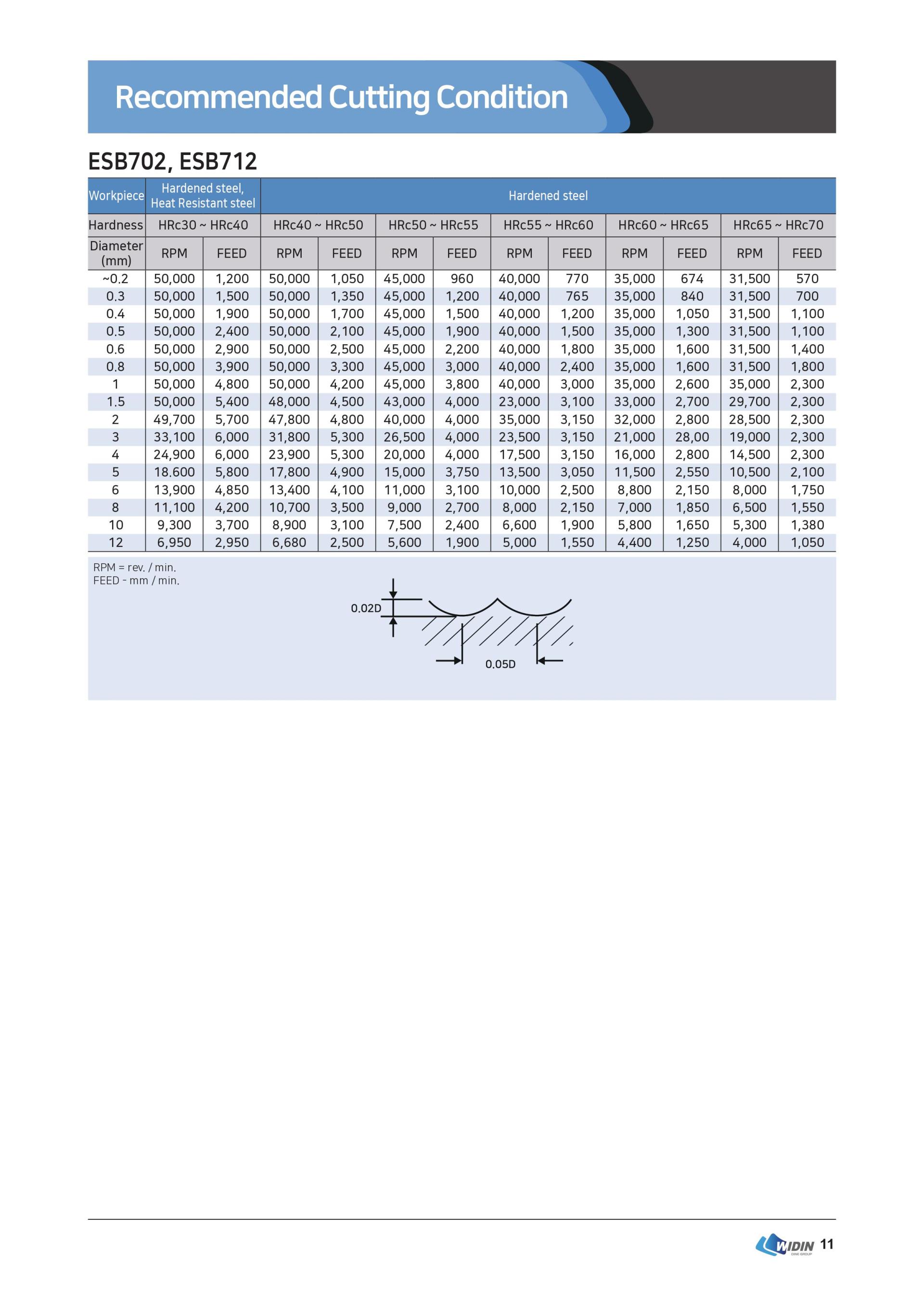 Dao Phay Ngón, Dao cầu ESB702, ESB712, ESE702, ESE704, ESE714, ESE716 – Widin Gia công Độ cứng: 50~63HRC
