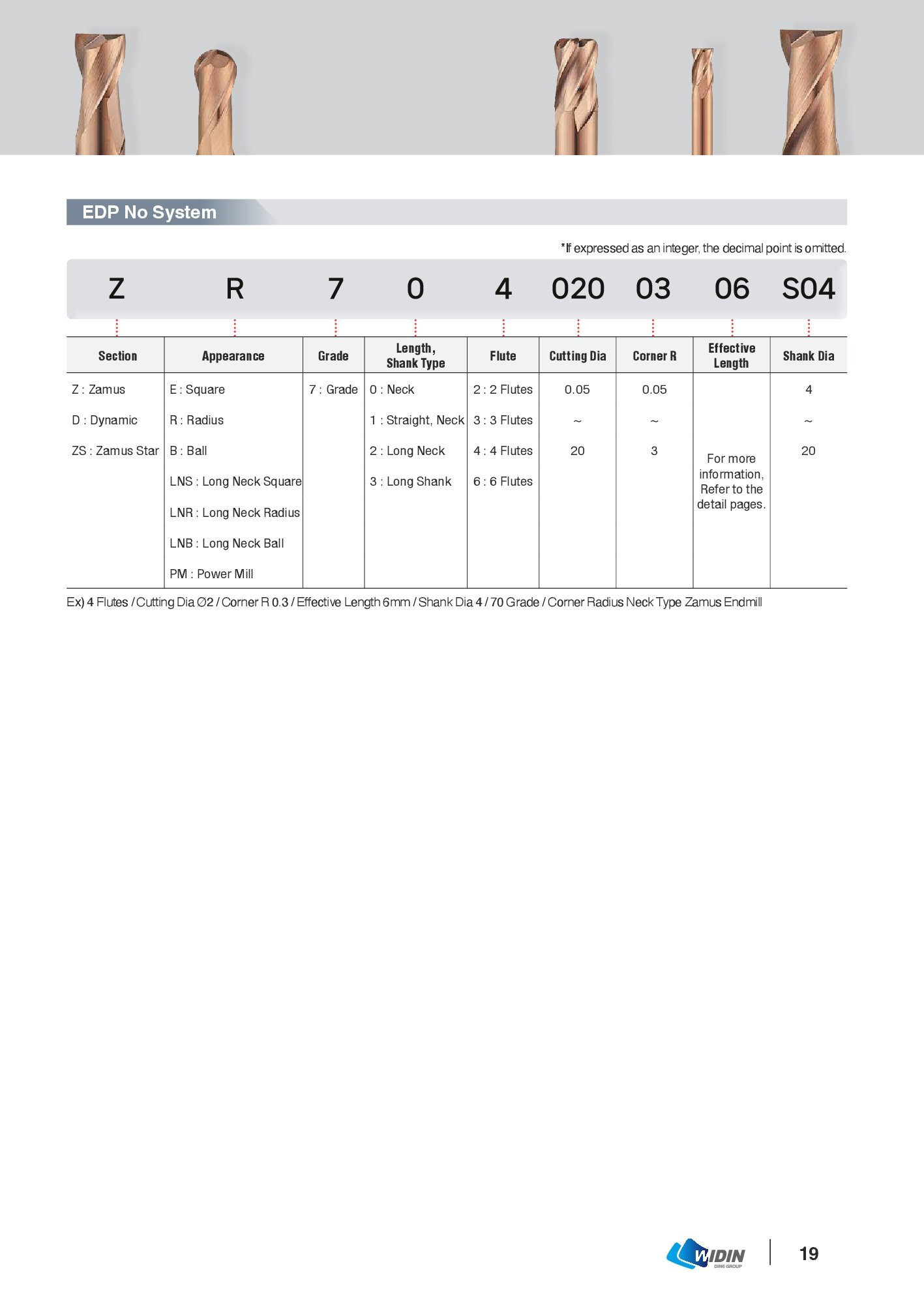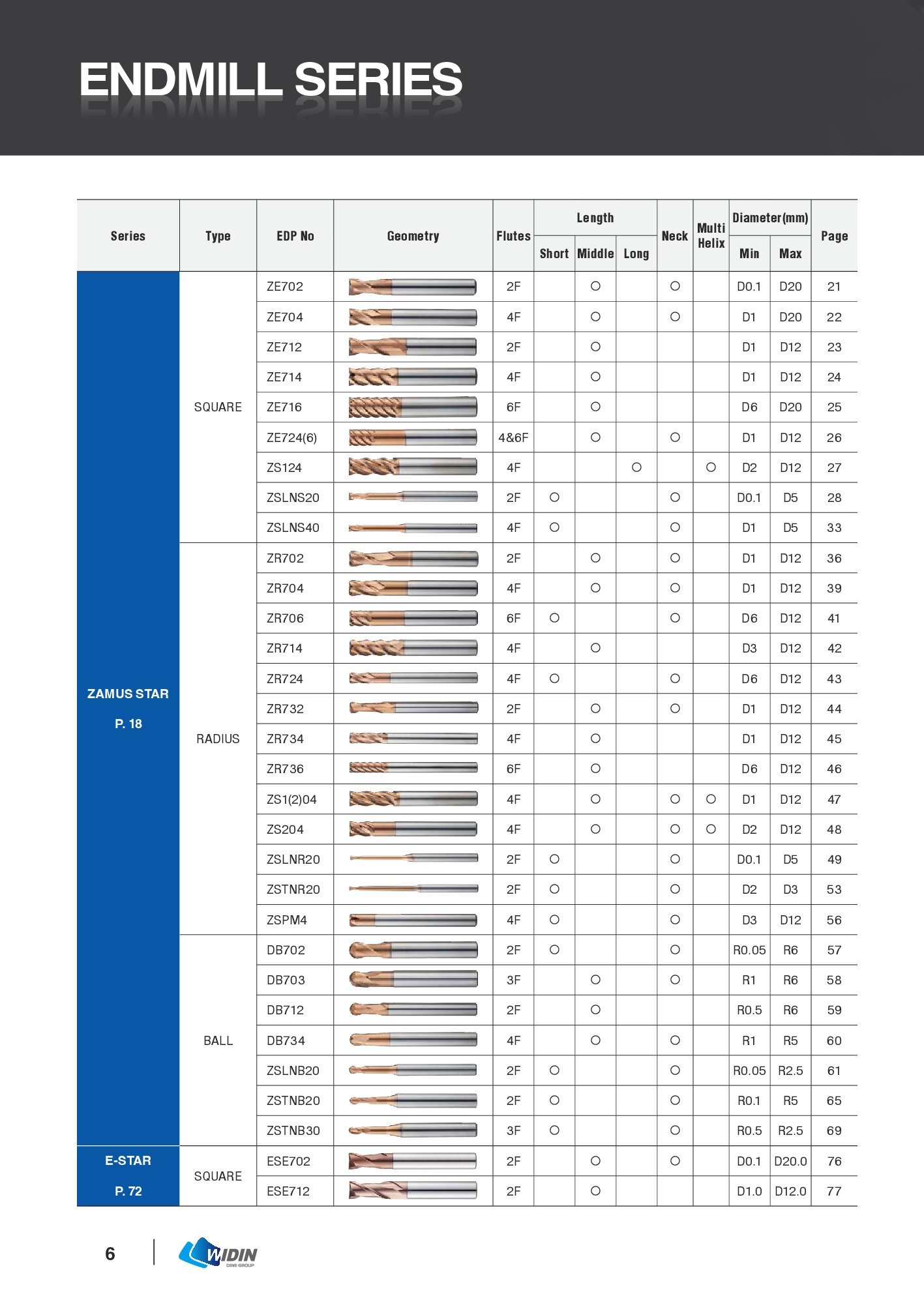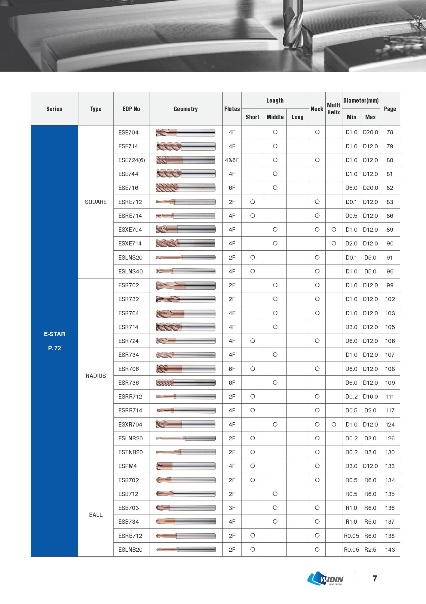 Dao Phay Ngón, Dao cầu ESB702, ESB712, ESE702, ESE704, ESE714, ESE716 – Widin Gia công Độ cứng: 50~63HRC