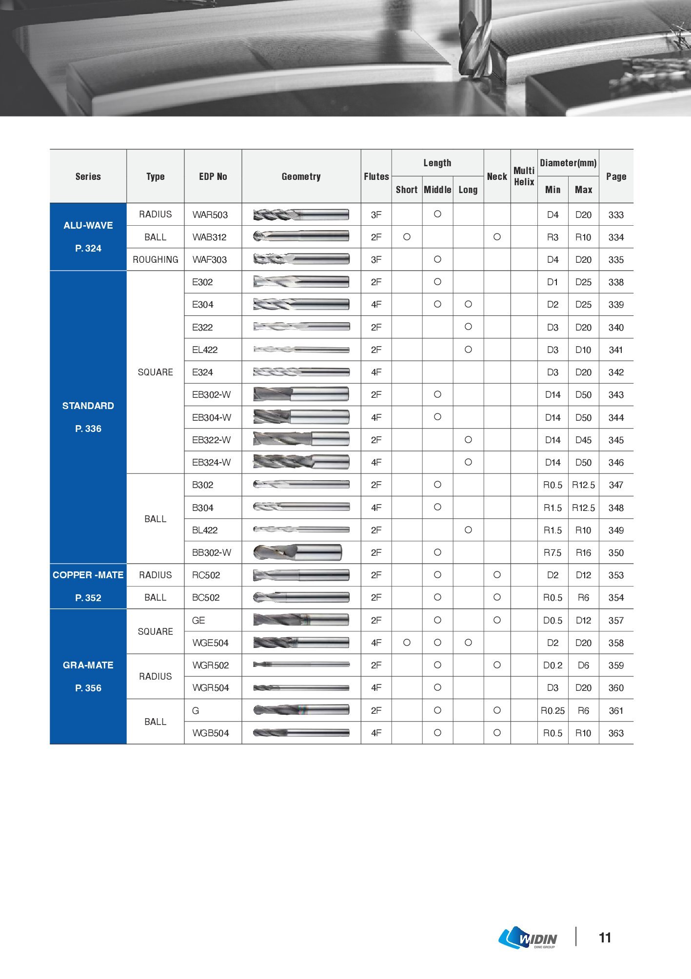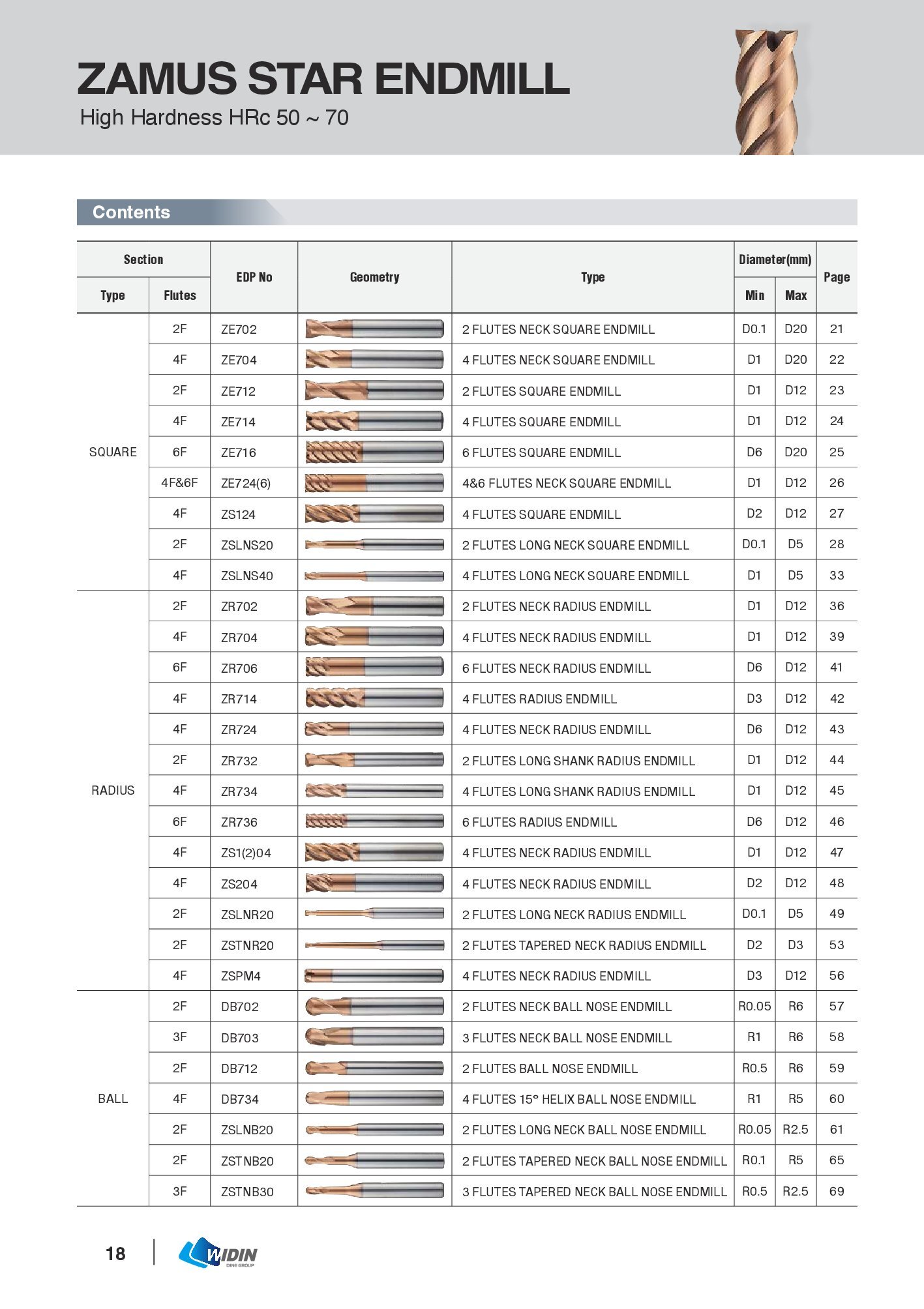 DAO PHAY NGÓN, DAO CẦU GIA CÔNG ĐỘ CỨNG 30~50HRC – WIDIN