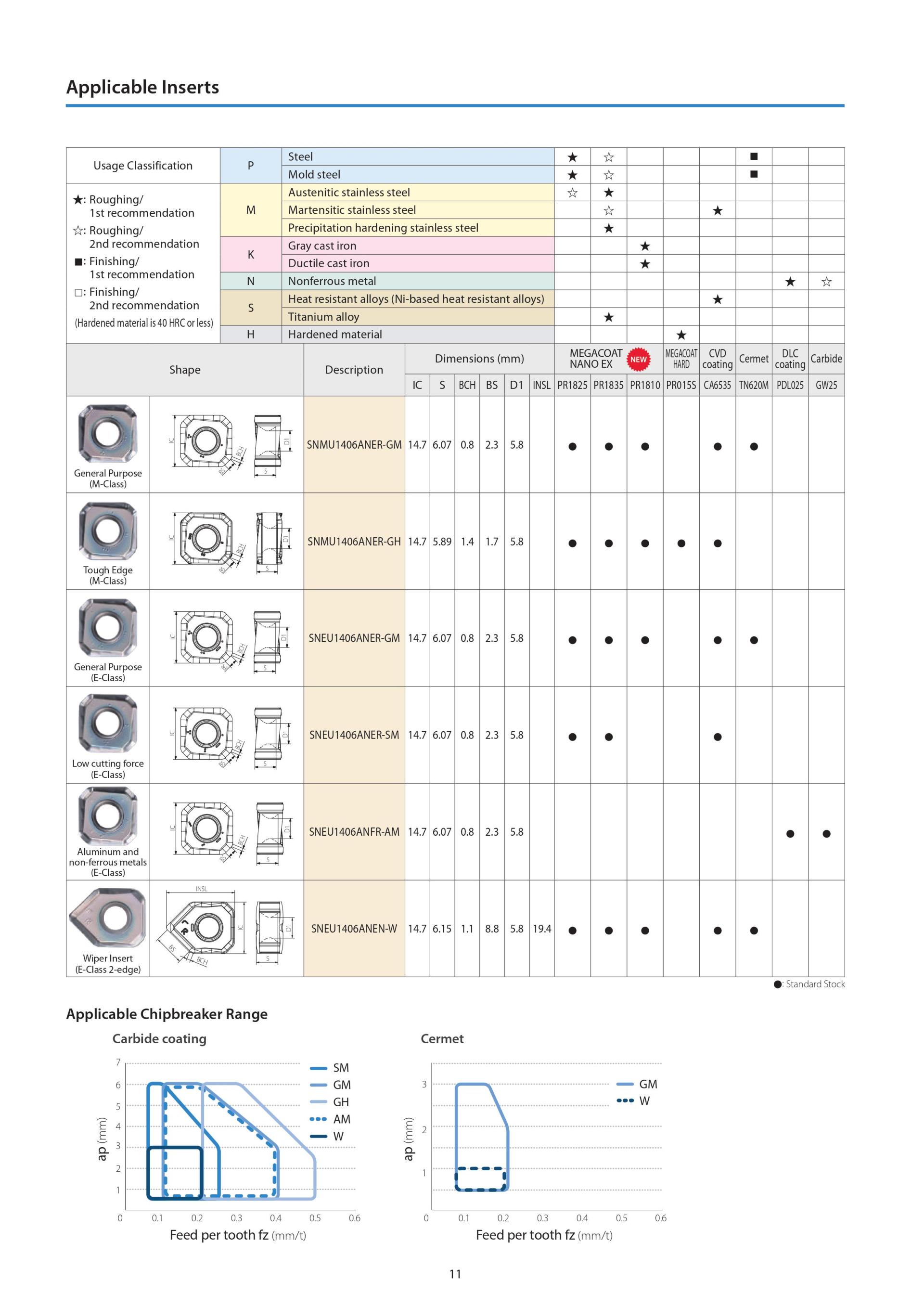 Dải sản phẩm rộng gồm insert và lớp phủ Ứng dụng gia công đa dạng các vật liệu: thép, inox, gang, vật liệu hợp kim, hợp kim nhôm...